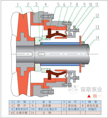 自平衡機械密封是宙斯泵業(yè)的特有技術,密封結構見右圖。